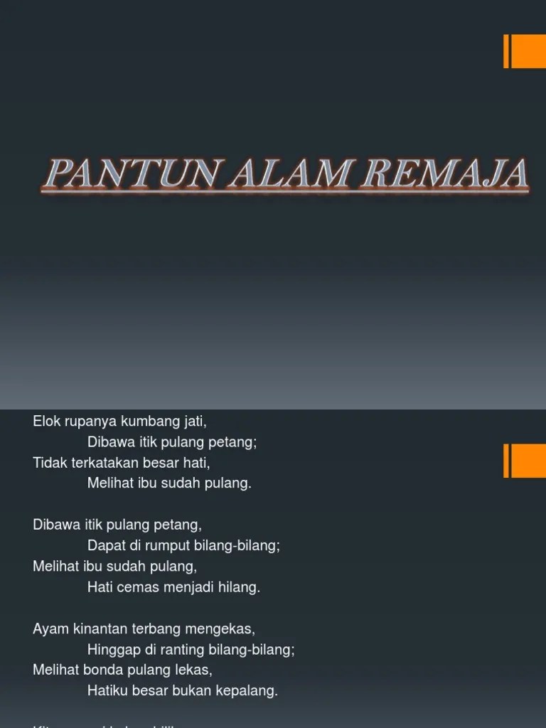 Pantun Alam Remaja Tingkatan 2 Pdf / Pantun Alam Remaja Pdf. Download free pdf view pdf. Jika tidak begitu, negara kita akan semakin tertinggal dari negara lain. Seni bela diri ini secara luas dikenal di indonesia, malaysia, brunei, singapura, filipina selatan, dan thailand selatan sesuai dengan penyebaran berbagai suku bangsa nusantara (indonesia). Tandakan jawapan anda dalam kertas jawapan objektif. Baca versi flipbook dari buku teks bahasa melayu tingkatan 1. Kertas soalan ini mengandungi 9 halaman bercetak 9 jawapan bm tingkatan 2.